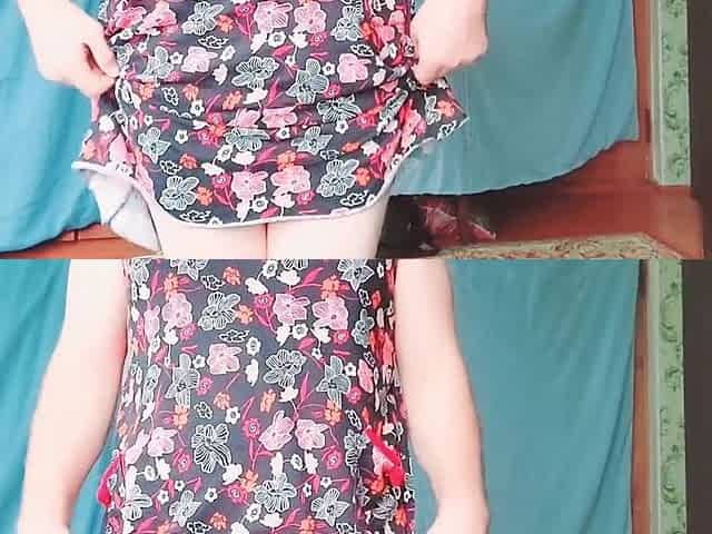 Crossdresser wearing a dress and stockings lying down jerking off - uekhui