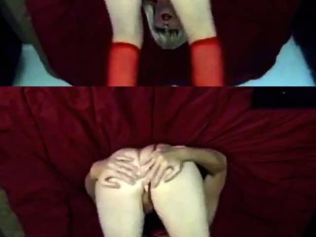 Kinky wife toys her crossdressing husbands ass with a dildo