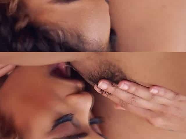 Guy watches ebony wife lick n scissor busty black gfs pussy