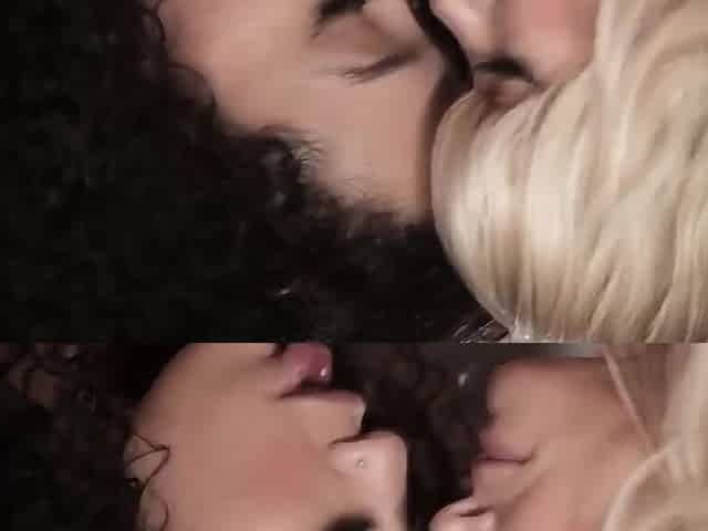 Stepmom and stepdaughter kissing and sucking each others breasts