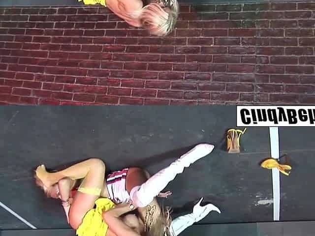 Brunette wrestles gf for a kiss and gets her boobs sucked