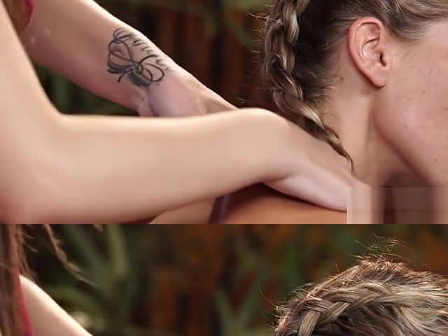 Tattooed Babe Tribbing On A Lesbian Teen