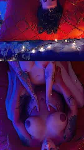 Overhead Lesbo Tribbing on Large Tittie Dude- Bouncing Bazookas and Curly Twat