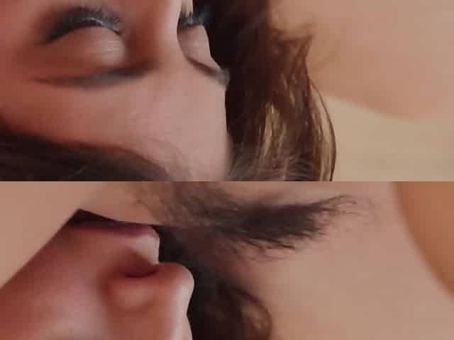 Scissoring Asian lingerie MILF pussylicked by fireplace