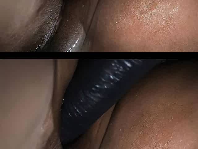 Sexy wife stretches her greedy gap with a gigantic Triple sex toy