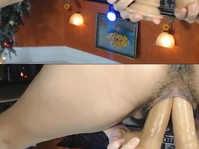 Triple Dildo Fucking Wet Hairy Pussy