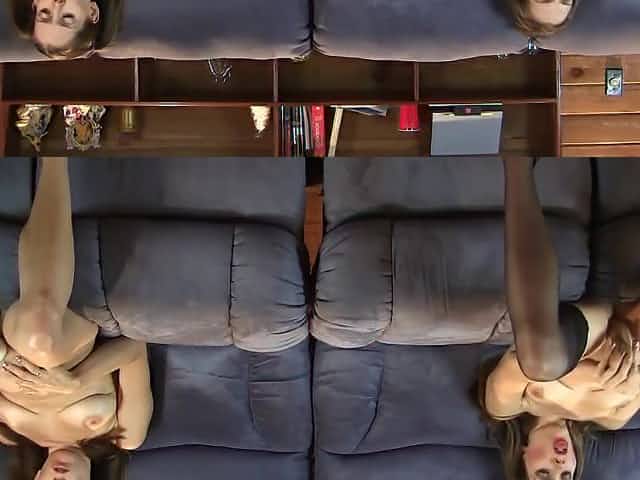 The Lelu Twins double vision mutual masturbating on the couch