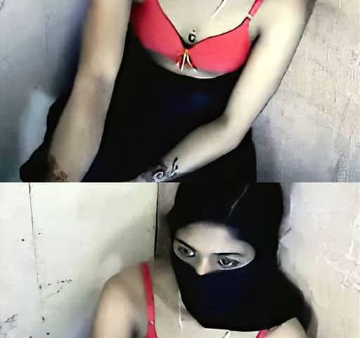 Hiding her face kinky Indian nympho in red bra fingers her ugly pussy