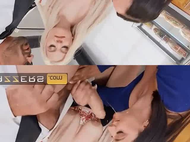3some washroom fellatio with Ebony Lynn and Vicky Sixxx