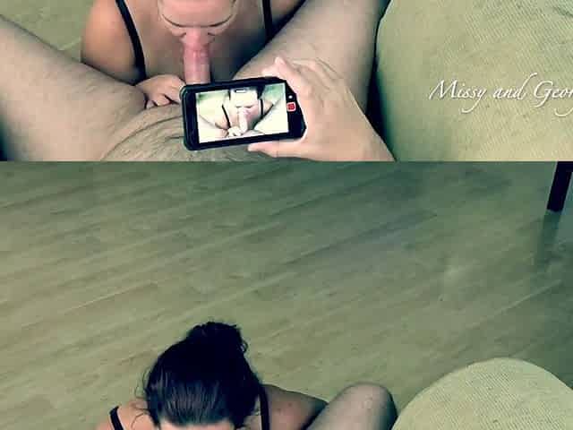 Missy gives an incredible deep throat to George's thick uncut cock - POV blowjob with a massive helmet
