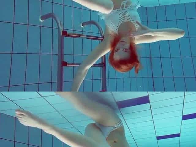 Yummy redhead girl and hung dude fuck underwater like crazy