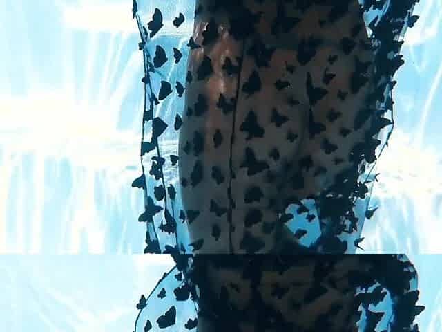 A Woman Floats In A Butterfly-adorned Mesh Dress