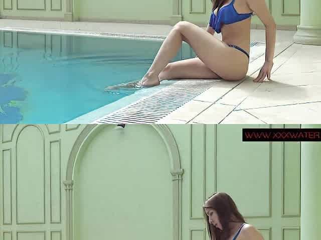 Tiffany blonde perfect round booty teen swims underwater and undresses