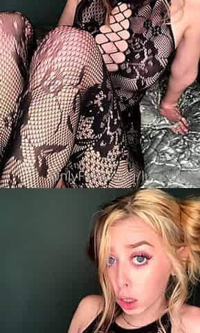 Horny blonde teen Mia Mimi indulges in close-up role play with a phat pussy stretching