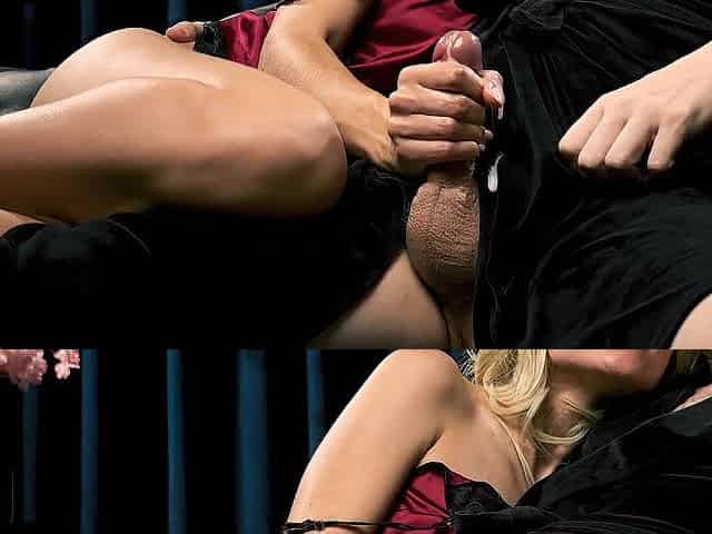 Jenny Babie And Stacey Saran Finish Him Off With A Double BJ After A Bang