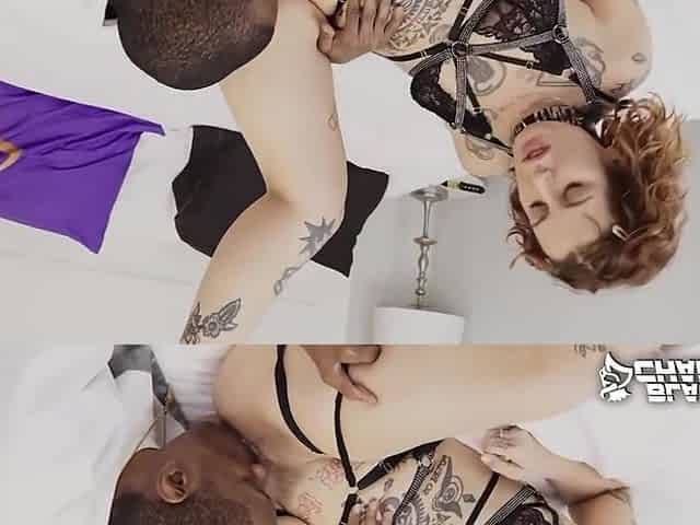Tattooed goth baddie seduces the black man with her lingerie