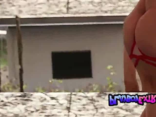 Breasty brunette hair chick slipping without her hawt underware outdoor
