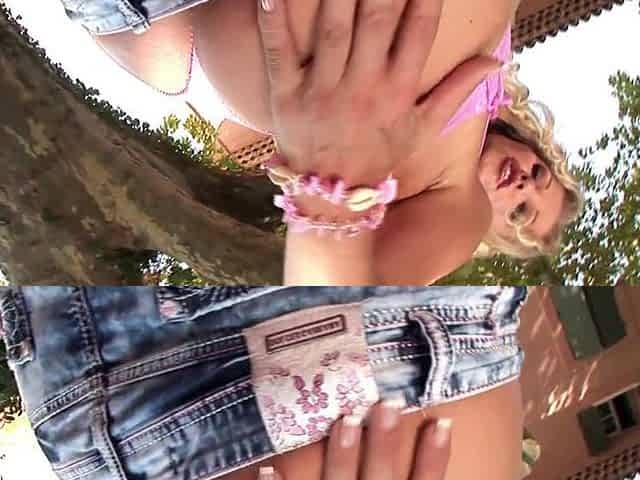 Busty babe's outdoor fun