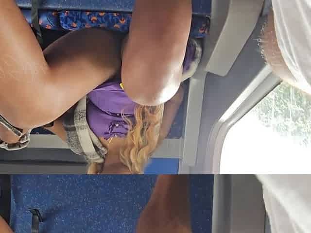 Hot Latina gives a thrill on the bus by flashing her upskirt and getting touched