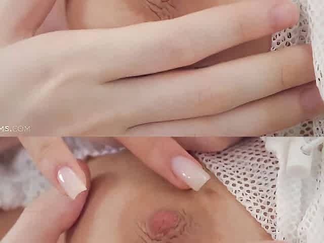 Cute Girl Pulls Down Her White Panties And Strokes Her Pussy