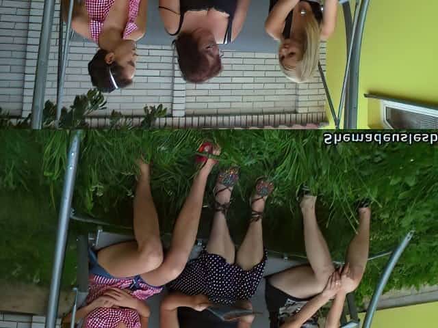 Adorable girlfriends in shorts undress each other and make love in the garden