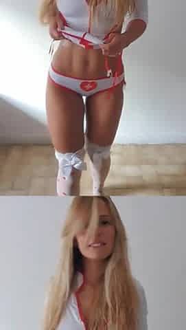 Fine Woman Shows her Body when Undressing from very Short White-ebony Costume.