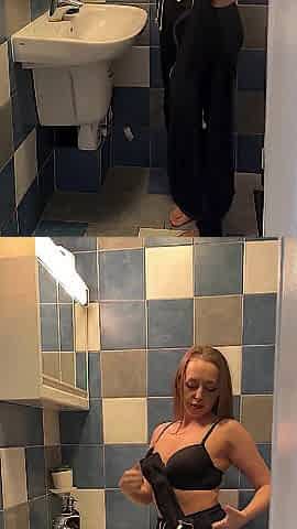 The boss's stepdaughter records herself in the bathroom undressing.