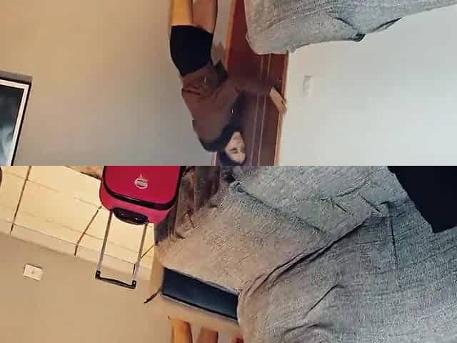 Hotel Maid Fucked by Stranger Guest When She Clean His Room While He Was Masturbat on Bed!