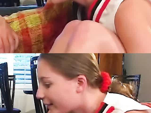 Slobbery blow-job from a blond in uniform spunk in mouth,