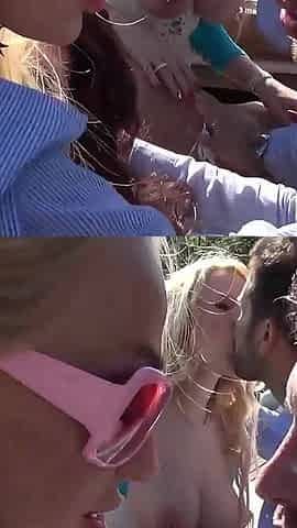 Naughty Cumhungry Nun Swallows Cum in Forrest Dogging Bukkake