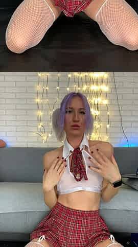 Short skirt schoolgirl veggiebabyy enjoys rear glass dildo anal pleasure