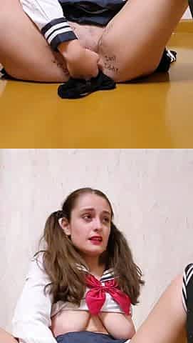 Cosplay beauty masturbates in uniform