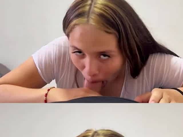 Busty Student Gives Stepfather POV Blowjob & Takes Cum In Mouth At 18
