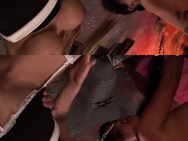 Brunette hair hotty in a cute uniform screwing with 2 boyz in the dungeon