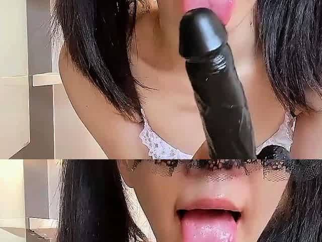Cosplay Maid Uses a Dildo and Gives a Messy Blowjob Solo