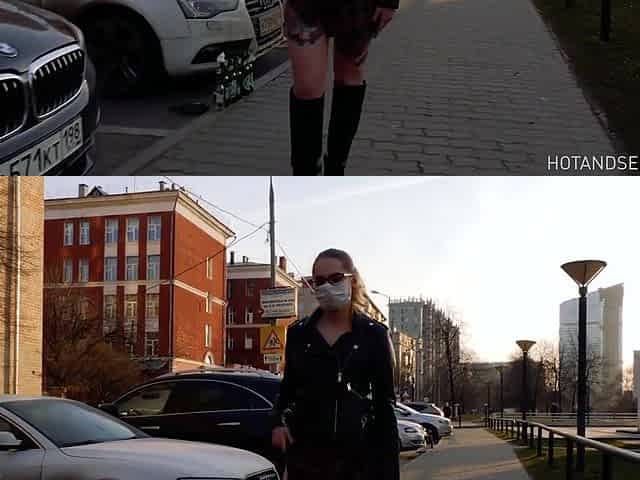 Amateur Public Upskirt No Panties Street Walk With Braless Boobs And Vagina Flashing With Thick Legs