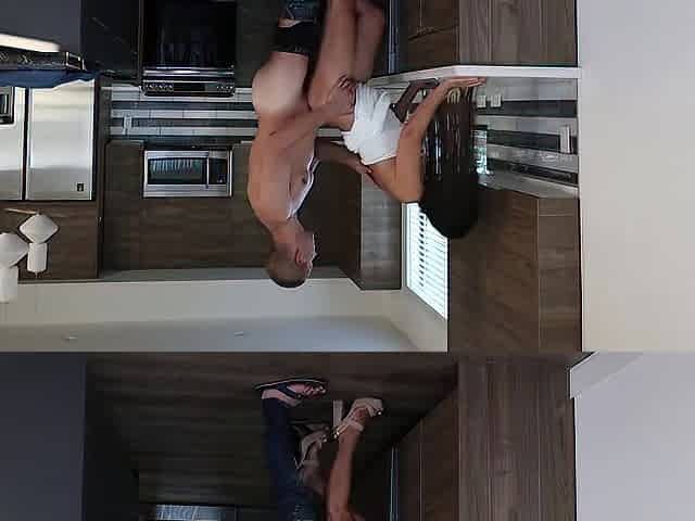 Petite 21 year old hotel roommate fucked doggystyle in the kitchen 3 way