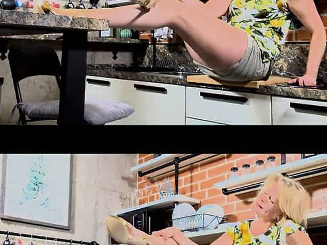 Housewife In Pantyhose In The Kitchen. Naked Maid Gets An Orgasm While Cooking. C3 Date