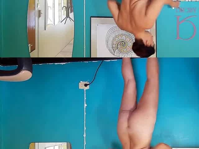 Indian artist paints Mandala pattern in the nude while relaxing to music in an art workshop