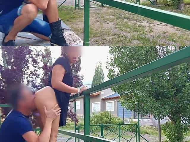 brunette girl shows panty outdoor