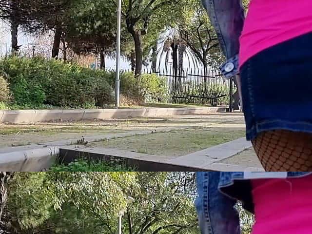 Curvy in ripped tights walking and show her ass public