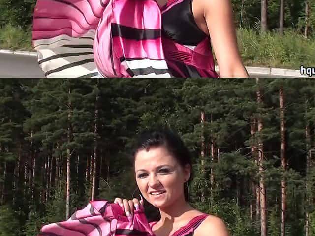 Naughty Russian Slut Lada - Upskirt flashing - Big tits outdoors on public