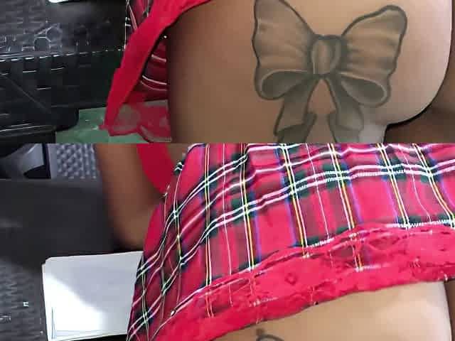 Allie clad in a nano skirt shows her awesome ass to a guy