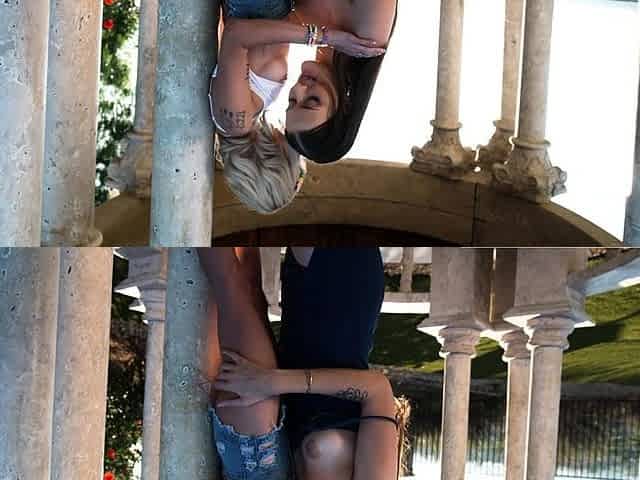 Caught by the police while getting frisky in public with no panties on for voyeurs in trucks
