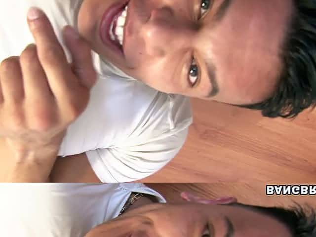 Desirable brunette gal Abril gets her twat fingered by two dudes