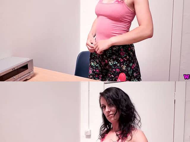 Fantastic Lucy Zara goes solo in the locker room and plays with boobies