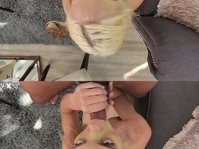 Blond teen Gia Storm gets her slit rammed before taking cumshots in her mouth
