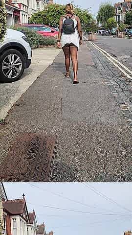 in the Park a cutie out of pants. UP PETTICOAT. CLOSE UP