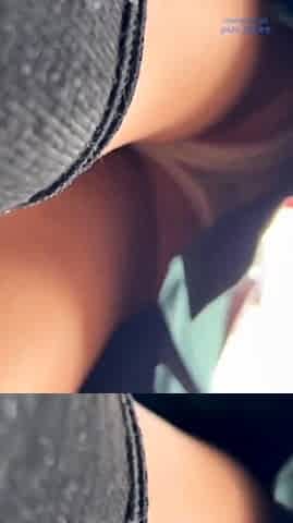 Upskirt view on the vagina out of pants