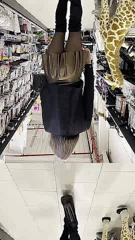 cutie shows vagina upskirt out of pants in the store
